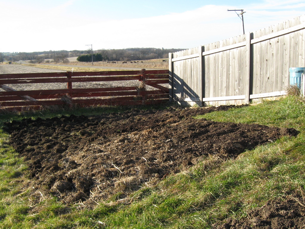 Also spread about 10 gallons of wood ashes and charcoal on the gardens. I’m using a 10-gallon metal trash can for getting the ashes out of the wood stove, which lets me do it while there are still coals in there. Those coals become charcoal. That then goes in the garden, slowly building up my terra preta. I’m only slightly concerned that it seems like an awful lot of ash this year — I hope I don’t make the soil too alkaline. On the other hand, this leaves me free to use more acidic organic matter in the garden, such as pine needles.